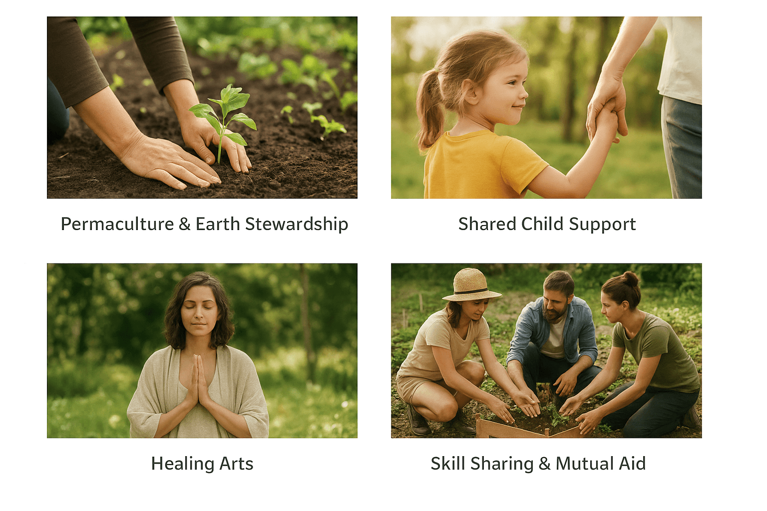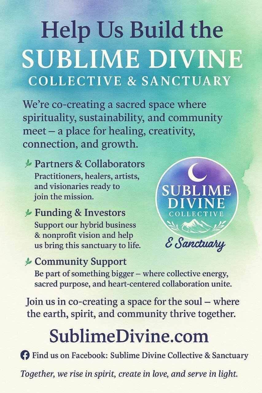 To establish a sanctuary. To create a sacred, sustainable haven where holistic healing, creative expression, and spiritual growth come together. We envision a place where nature and spirit meet. a place where food forests flourish beside meditation spaces. There will be a community kitchen that nourishes body and soul, a library to inspire learning and connection, animal stewards, and much more.